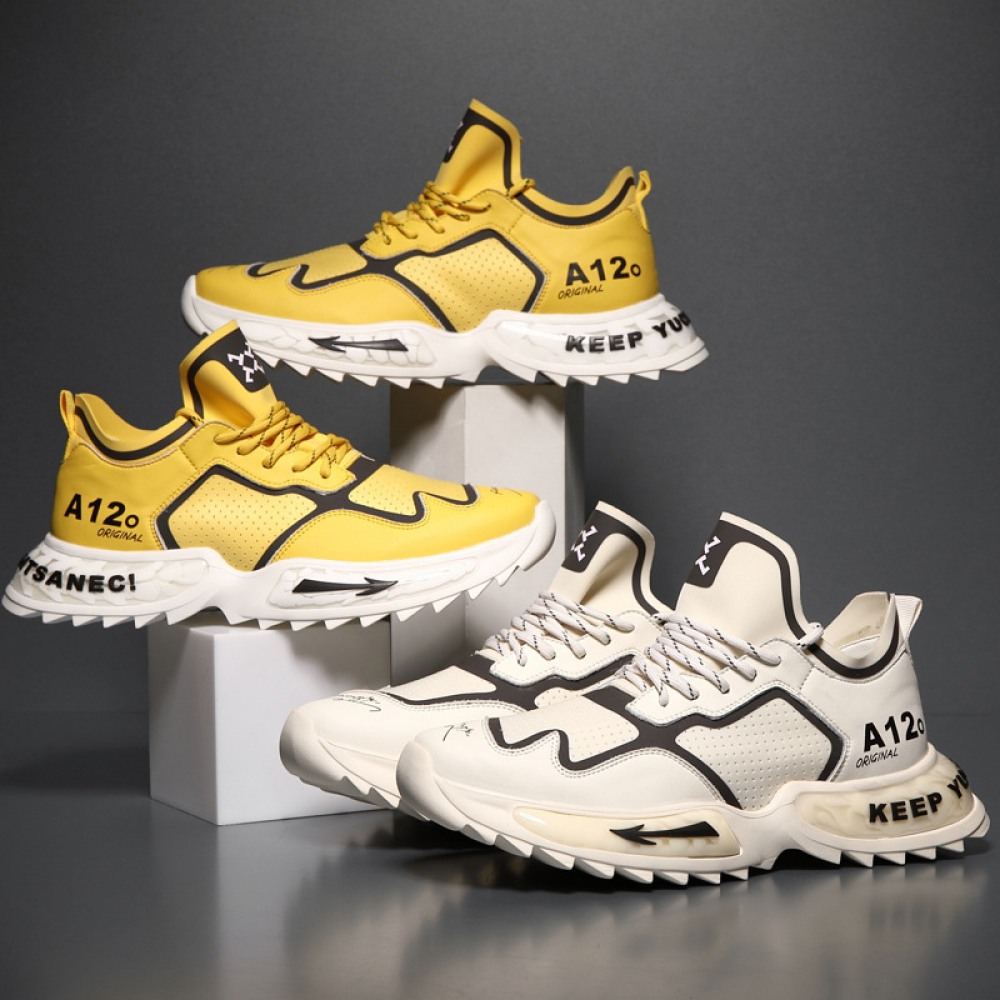 Mens Runing Shoes Walking Non Slip Blade Type Sneakers Yellow