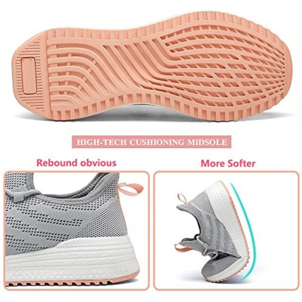 Women's Running Shoes Lightweight Non Slip Breathable Mesh Sneakers Sports Athletic Walking Work Shoes Grey